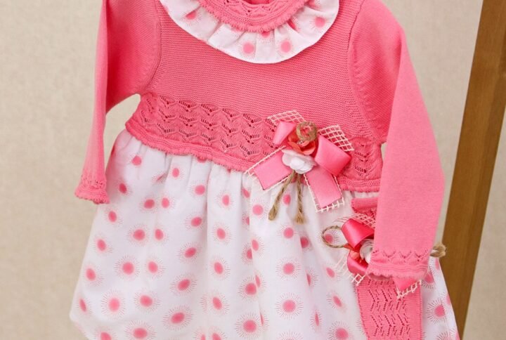 As sweet as a scoop of mint ice cream on a warm day, this pastel knit dress brings pure charm to every little moment. The soft knit bodice is sprinkled with delicate pearl-like accents, while the skirt flows with a scalloped hem that adds the perfect touch of whimsy. A dainty bow detail at the waist ties the look together, making it picture-ready for any occasion. Complete with a matching headband adorned with a bow and tiny flowers, this set keeps your little one comfy, stylish, and absolutely unforgettable—whether it’s a family gathering, a sunny stroll, or her very first photo shoot.