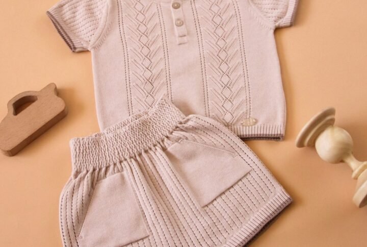 Sweet as a cloud and soft as a hug, the Sugar Puff Knitwear Set wraps your little one in pure comfort. The ruffle-sleeve top features a charming diamond knit design, paired with cozy pull-on pants for all-day ease. Whether in creamy vanilla, pastel mint, or blush pink, this set is perfect for playdates, naps, or special outings. Gentle on delicate skin and irresistibly cute, it’s a must-have for your baby’s wardrobe.